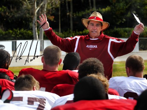 Nicholas Lou "Nick" Saban, Jr. is the head football coach of the University of Alabama, a position he has held since the 2007 season. Saban previously served as head coach of the National Football Leagues's Miami Dolphins and three other universities: Louisiana State University, Michigan State University and the University of Toledo. He appeared on the September 1, 2008, cover of Forbes magazine as "The Most Powerful Coach in Sports". Coach Saban's career record as a college head coach is 177-59-1. Saban led the LSU Tigers to the BCS National Championship in 2003 and the Alabama Crimson Tide to BCS and AP national championships in the 2009, 2011 and 2012 seasons, making him the first coach in college football history to win a national championship with two different Football Bowl Subdivision (FBS) schools since the inception of the AP Poll in 1936.Saban and Paul "Bear" Bryant are the only coaches to win an SEC championship at two different schools. In May 2013, he was inducted into the Alabama Sports Hall of Fame. Saban also is the co-founder, along with his wife, Terry, of the foundation Nick's Kids. This foundation has been used by the Sabans to help mentally-challenged children ever since Saban started head coaching. In the first three years at Alabama, Nick's Kids raised more than $1 million. The 2014 NFLPA, Kentucky Chapter Blanton Collier AwardFranky Minnifield with the Blanton Collier Award accompanied by Blanton Collier Hansen (grandson of Blanton Collier from Houston), wife Diane Minnifield and Kay Collier McLaughlin (daughter of Blanton Collier from Lexington)