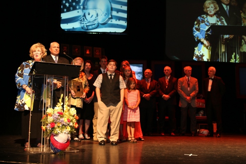 Kay Collier McLaughlin, the Collier family and a group of coach Blanton Collier players receiving coach Collier's award on June 24, 2016 for being inducted in to the Kentucky Pro Football Hall of Fame.